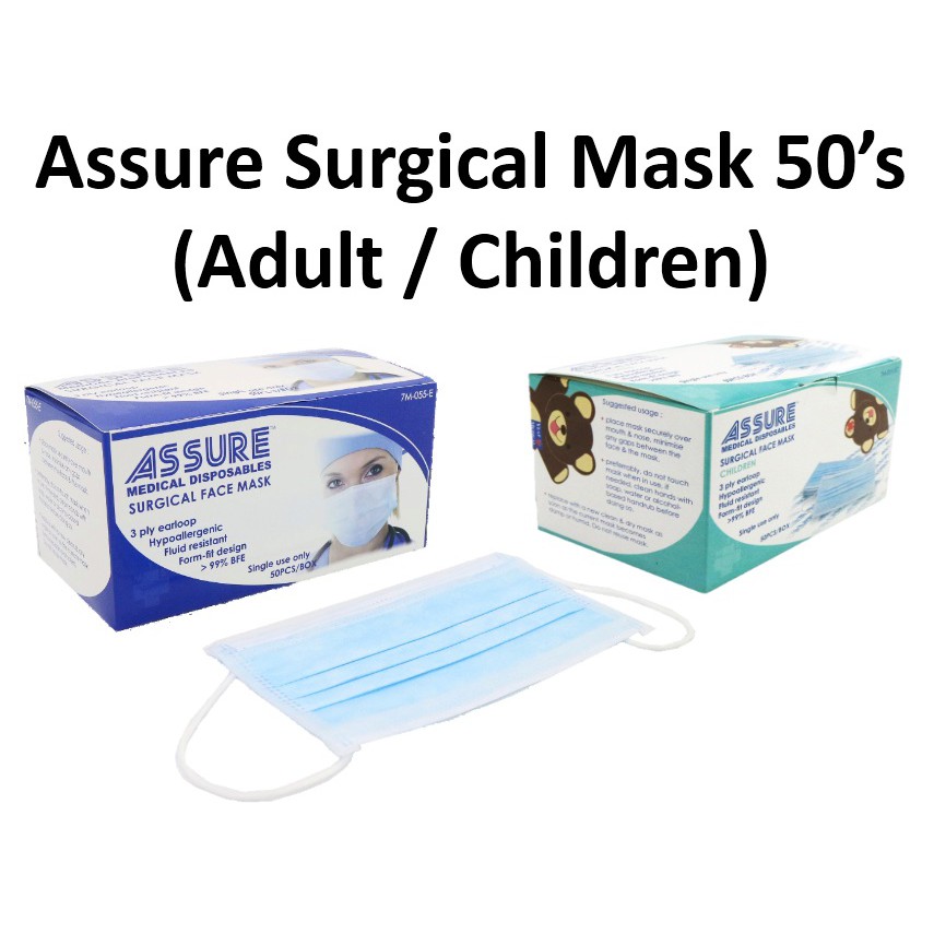 Assure Surgical Face Mask 3 Ply Adult And Child Mask 99 Bfe Widely Used In Singapore Hospitals And Clinics Shopee Singapore