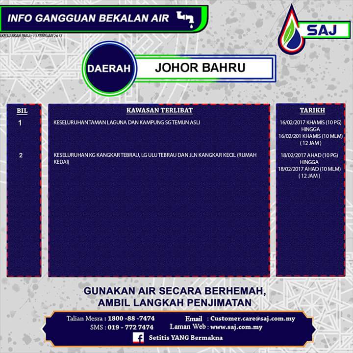 بولتين جوهر On Twitter Info Saj Gangguan Bekalan Air Di Johor Bahru Selama 12 Jam Pada 16 18 Feb 2017