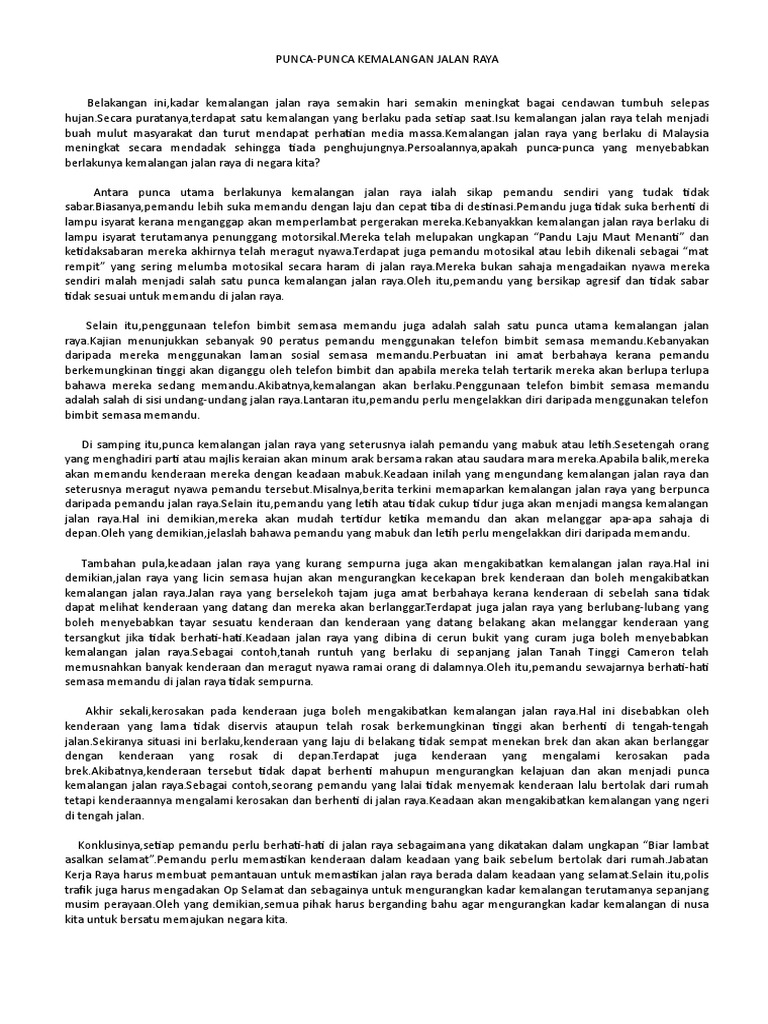 Punca Punca Dan Langkah Mengatasi Kemalangan Jalan Raya Docx