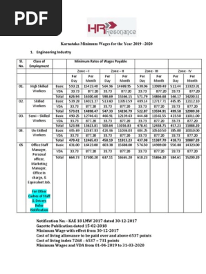 Karnataka Minimum Wage 2019 20 Wage Minimum Wage