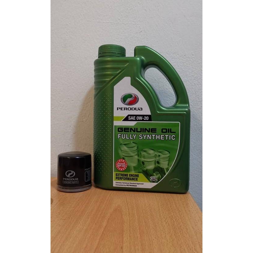 Perodua Fully Synthetic 0w20 3l Engine Oil With Perodua Oil Filter 15601 P2a12 Lazada