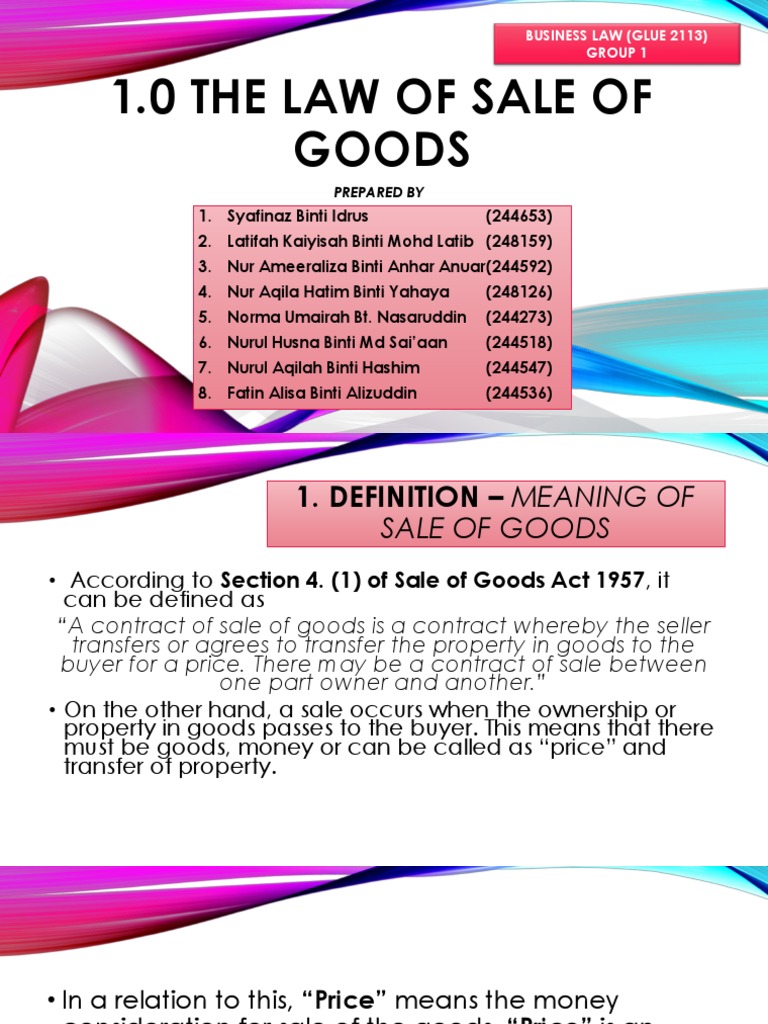 Lecture 8 Sale Of Goods Business Law Sale Of Goods Lecture 7 1 Sale Of Goods Act 1957 Soga The Statute Governing The Sale Of Goods In Peninsular Course Hero