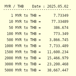 5250 Thb To Myr Exchange Rate Live 697 58 Myr Thai Baht To Malaysian Ringgit Converter Live Calculator